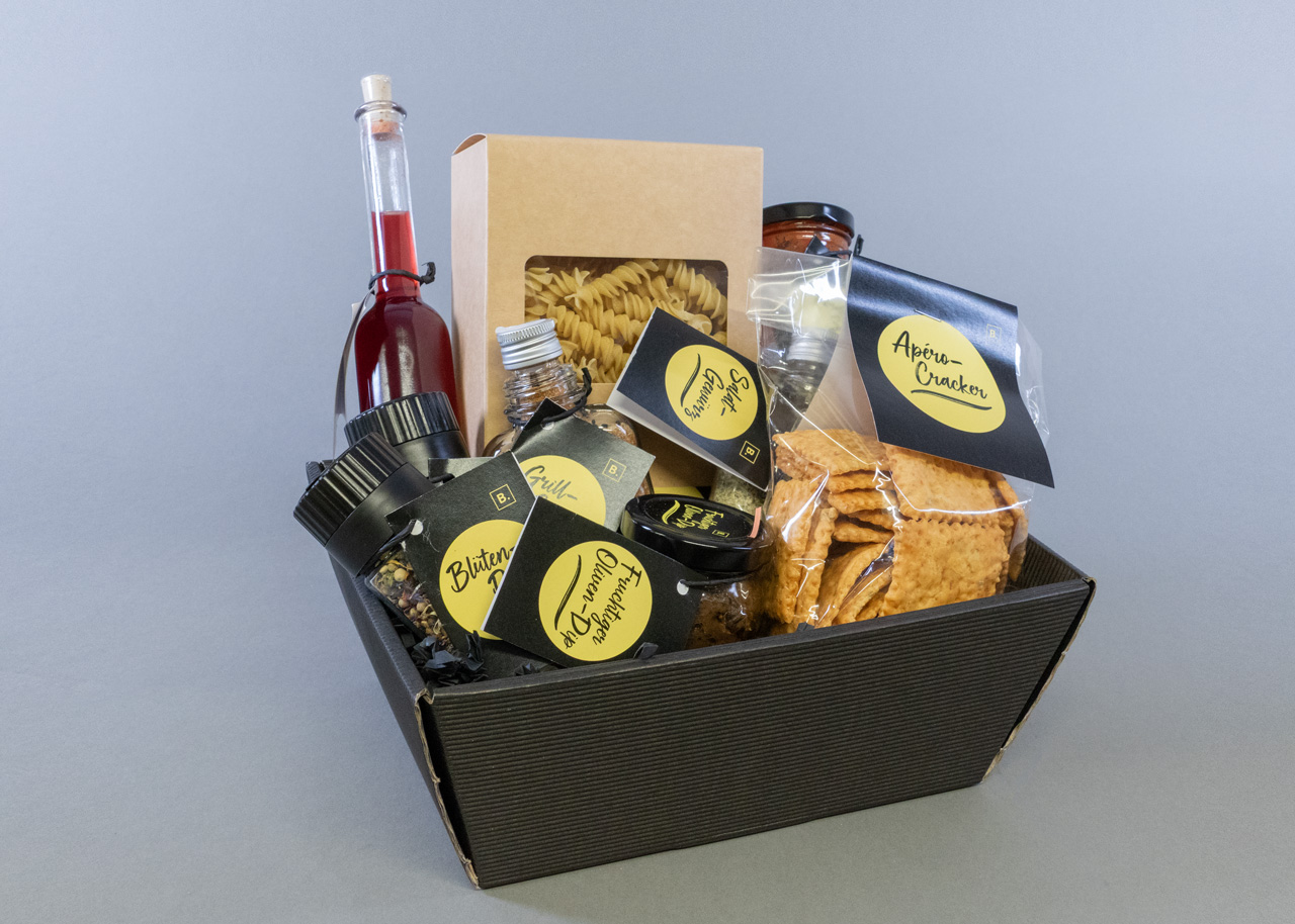 Für geschäftliche Jubiläen oder private Anlässe: der «Jubikorb» ist das richtige Präsent, um Jubilaren oder Geburtstagskindern Wertschätzung zu zeigen.
