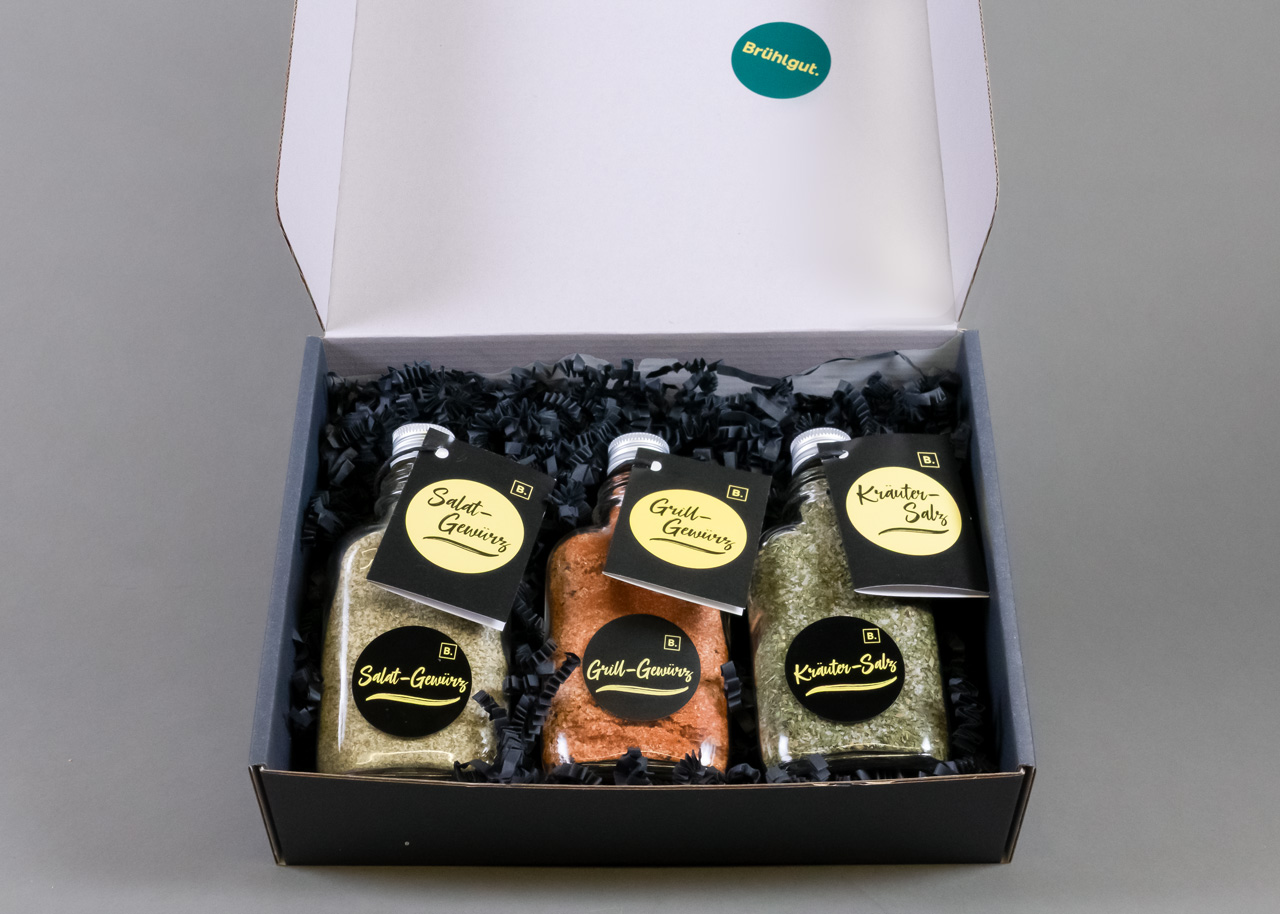 Inhalt: Salatgewürz (70 g), Kräutersalz (90 g) Grillgewürz (90 g)