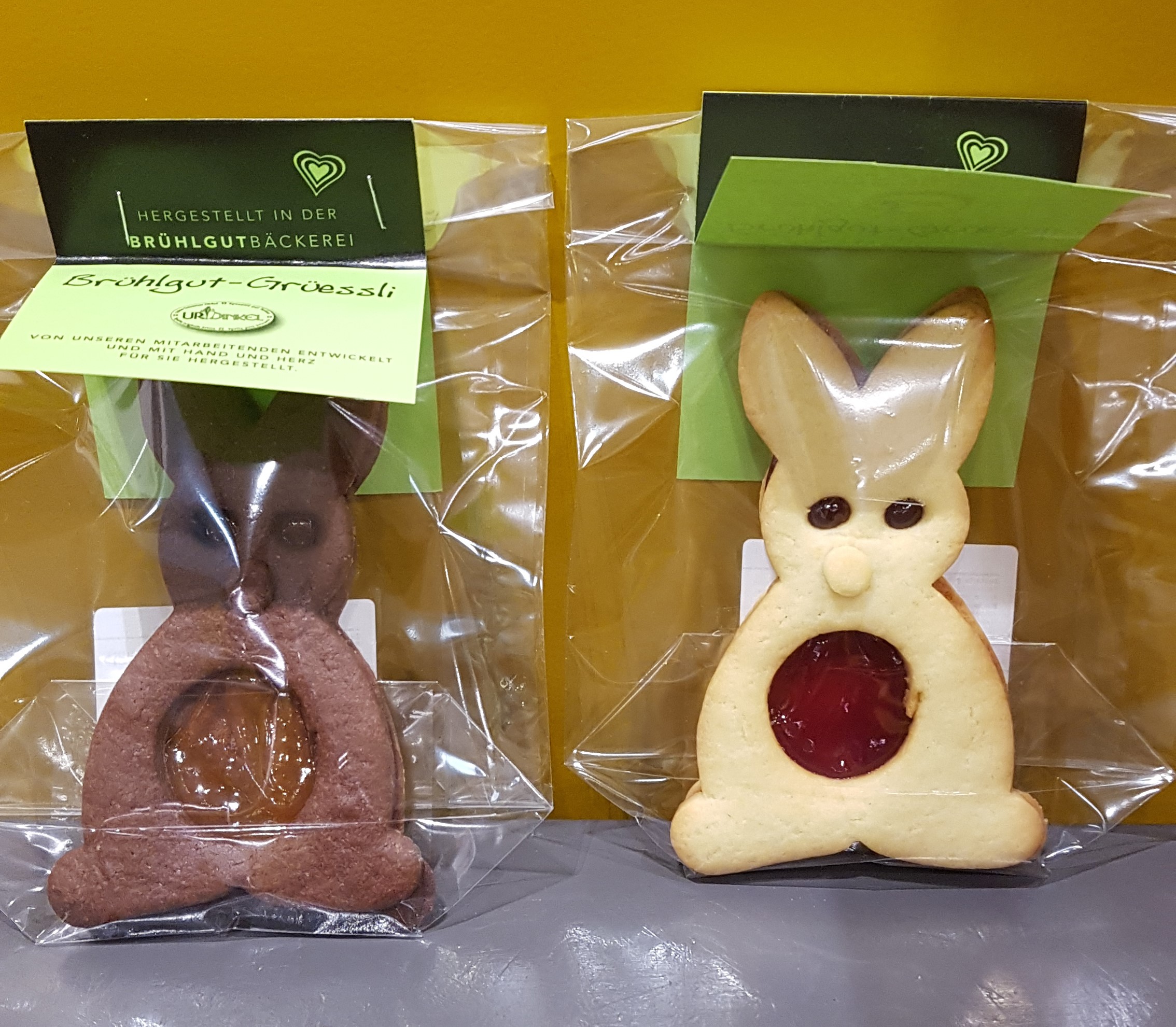 Aus unserer Hausbäckerei. Die österliche Variante zum "normalen" Spitzbueb. Gefüllt mit feiner Konfitüre. Hell oder dunkel. Ganz wie man es gerade mag.